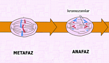 Kardeş kromatitler birbirinden ayrılarak karşılıklı kutuplara çekilir. Ve artık bu kromattitler kromozom olarak adlandırılır. Kardeş kromozomlar kutuplara ulaştığında anafaz bitmiştir. (3-15dk)