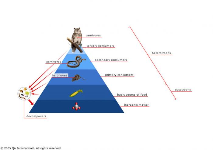 Beslenme basamağı denen bu Aşamaların belirlenmesinden sonra, beslenme ağı karmakarışık bir çizgiler yumağı olmaktan çıkarak düzenli bir şemaya dönüşür. Bu şemaya bakıldığında, bitkilerden otçullara ve etçillere doğru gidildikçe her basamakta daha az sayıda canlı olduğu açıkça görülebilir. Bu nedenle, tabanı geniş tepesi dar olan bu şekil bir piramidi andırır. Bu beslenme piramidinin tabanında yaprak, ot, çiçek ve ağaçlarıyla kalabalık bir bitki topluluğu, tepesinde ise yalnızca bir iki gelincik ya da baykuş vardır.