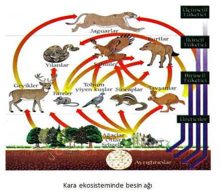 • Besin zincirleri ile canlılar arasında organik madde ve enerji akışı gerçekleşir.