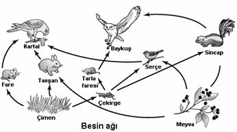 Bir bölgede canlı ve cansızlardan oluşan sisteme ekosistem denir. Canlılar doğrudan veya dolaylı olarak beslenmek için, birbiriyle etkileşmesi sonucu besin zinciri oluştururlar. Bir besin zincirinin halkalarını farklı canlı türleri oluşturur.