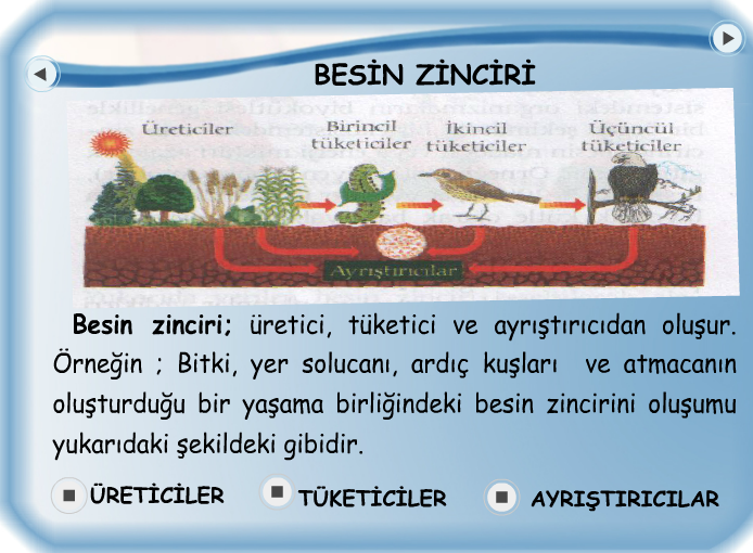 • Zincirdeki canlılar fonksiyonlarına göre üç tiptir.