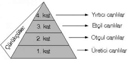 Enerji piramidin her bir katındaki besin ve enerjinin bir kısmı canlının yaşamında kullanılırken depo edilen miktarı sonraki katlara aktarılır.