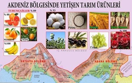 Akdeniz Bölgesi'nde yetiştirilen ürünler nelerdir?