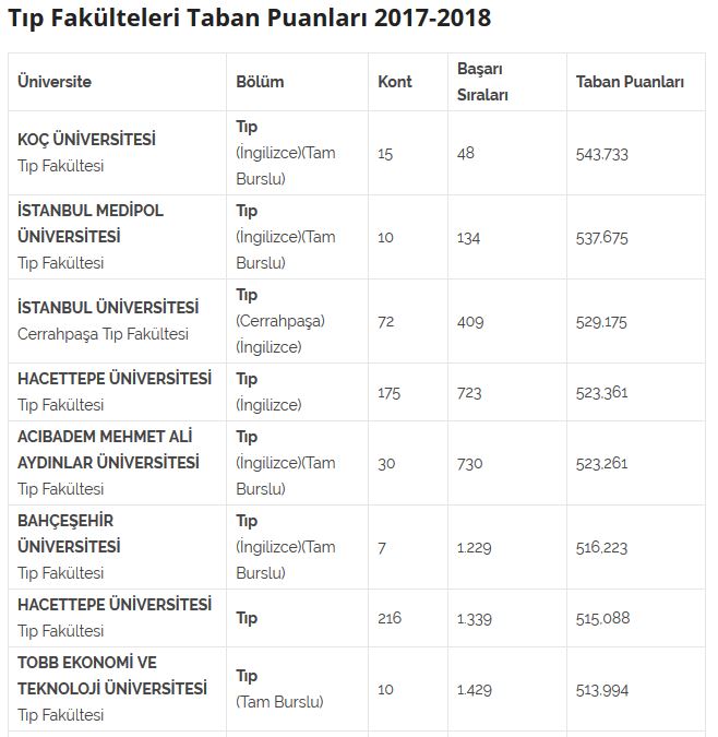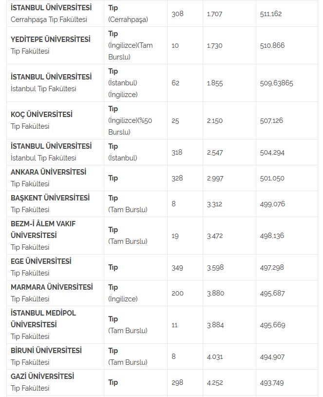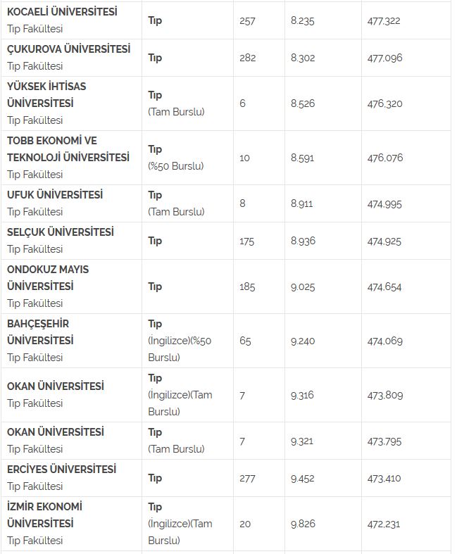 Tıp okumak için ÖSS'de kaç puan almalıyım?