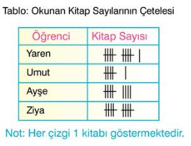 Bir veri topluluğundaki her bir verinin olma sıklığını çizgiler kullanarak gösteren tabloya çetele tablosu denir
