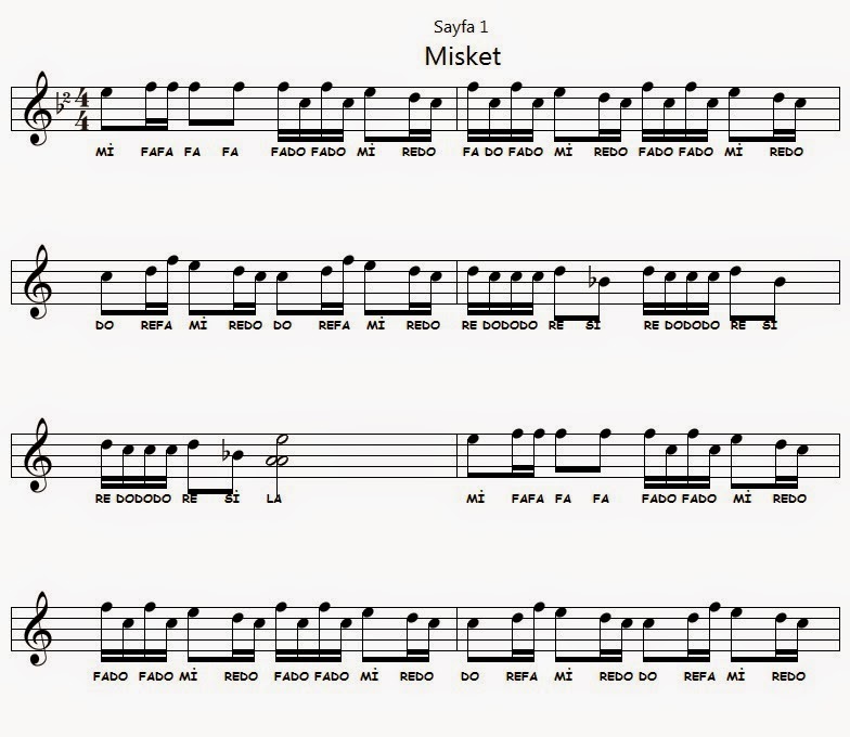 Misket türküsünün flüt ya da melodika notaları nelerdir?