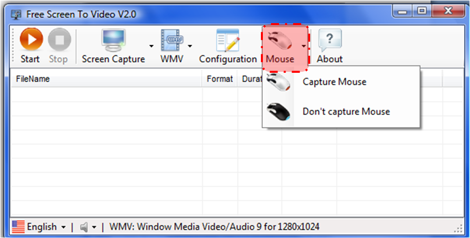 Son olarak bu program hakkında göstermek istediğim yer "Mouse" sekmesi. Buradan "Capture Mouse" seçeneğini seçerseniz videoda mouseunuz da görünür. Eğer "Don't capture Mouse" seçeneğini seçerseniz mouseunuz videoda görünmez.