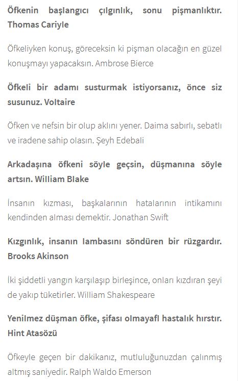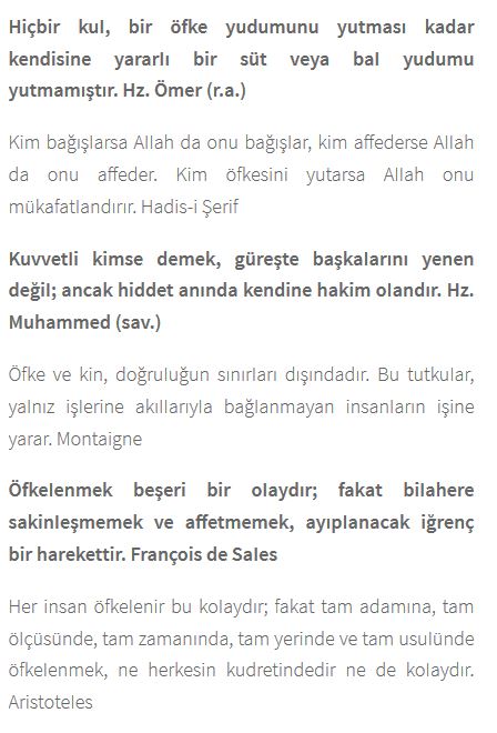 Öfkeli, sert, sinirli kimsenin zararı kendisinedir. Kendini yıprattığı, sağlığına zarar verdiği, toplum içinde saygınlığını yitirdiği gibi işlerini de bozup alt üst eder.