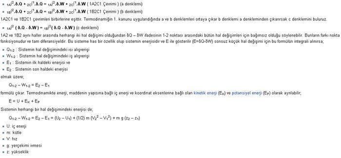 Bir sistemin iç enerjisindeki artış: sisteme verilen ısı ile, sistemin çevresine uyguladığı iş arasındaki farktır.