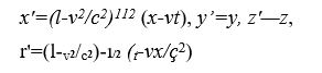 Bir gözlemcinin uzay ve zaman ölçümlerinin, hareketli bir başka gözlemcinin ölçümlerine göre hangi değerleri alacağı, Lorentz dönüşümleri adı verilen matematik denklemleriyle belirlenir. Örneğin x ekseni boyunca ölçülen bağıl hareketin hızı v ise, öteki referans sisteminde,