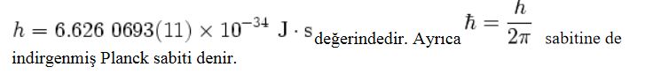 Joule- saniye) göstermektedir. Buna göre, bir enerji u, dalga frekansıyla Planck değişmezinin çarpımına eşittir (ışık hızı gibi doğanın temel değişmezlerinden sayılan h, herhangi bir radyasyon enerji miktarının dalga frekansına orantısını simgelemektedir).