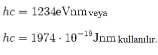 haline dönüşür. Böylece dalga boyu bilinen bir ışığın enerjisinin hızlıca hesaplanabilmesi için hc ifadesinin hesaplanmış büyüklüğü,