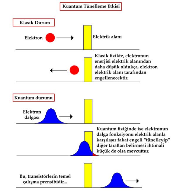 Kuantum aleminin bir başka garipliği, küçük maddi parçacıkların aslında bulunmamaları gereken yerlerde birdenbire gözlenivermeleridir. Biraz evvel Schrödinger’in Kedisi deneyinde bahsedilen çekirdek bozunumu tepkimeleri, aslında kuantum tünelleme denen bu garip etkiye dayanır.