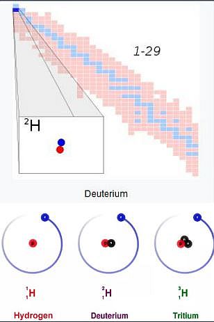 Bir proton ile bir nötrondan oluşan çekirdeğinin kütlesi, normal hidrojen çekirdeğininkinin iki katma eşittir. Döteryum, doğal hidrojen bileşiklerinde binde 0,14-0,15 oranında bulunan kararlı bir atomdur.