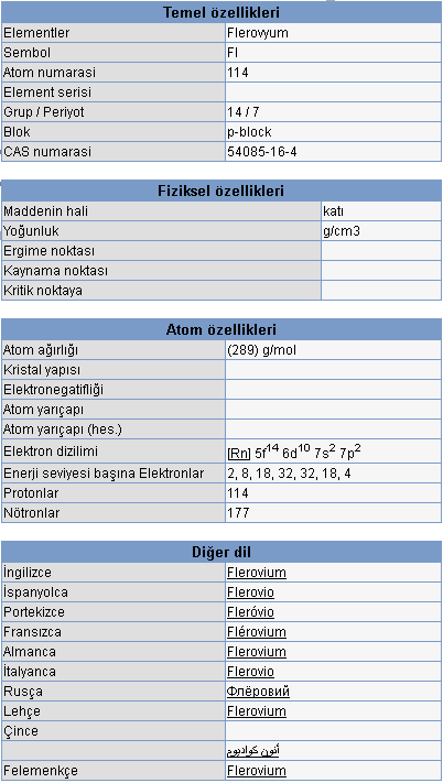 Bağıl atom kütlesi 289'dur. Erime noktası, kaynama noktası, yoğunluğu, atom çapı, elektronegatifliği, elektron dizilimi veya yükseltgenme basamağı henüz bilinmiyor.Bilinmemesinin sebebi nükleer reaktörlerde tepkime sonuçu ortaya çıkması ve çok kısa bir an için kararlı halini korumasıdır.çabucak bozunduğu için gözlemlenememektedir.
