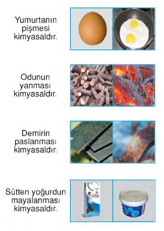 Maddenin iç yapısında meydana gelen değişmelerdir. Kimyasal değişmeler sonucunda maddenin kimliği değişir ve yeni maddeler oluşur. Kimyasal değişmeye uğrayan maddeler eski haline döndürülemez.