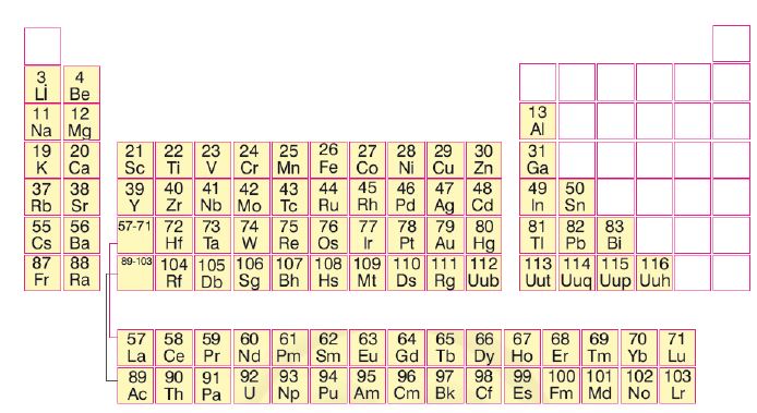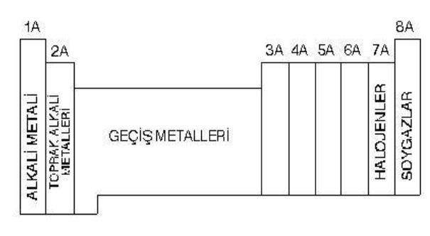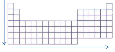 Metaller ile ametallerin (sağdan sola ve yukandan aşağıya metal niteliğinin artması) birbirinden ayırt edilmesini sağlayan dönemli sınıflandırma, bir kolondan diğerine element değerliğinin gelişimini de gösterir.