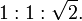 cm olur. İspatı ise 67,5°'lik açıyı 45° ve 22,5° şeklinde parçalayarak yapılır. Bu şekilde altta oluşan ikizkenar dik üçgende alt dik kenar 1 cm olursa hipotenüs