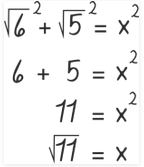 Pisagor teoremi, rasyonel sayılarla ölçülemeyen uzunluğun da varolduğunu gösterir. Örneğin, yukarıdaki şekilde olduğu gibi, dik kenarları birer birim olan dik üçgeni göz önüne alalım. Geometrik olarak, bu özel hal için, Pisagor teoremi gerçeklenir. Yani, büyük karenin alanı, dik kenarlar üzerine kurulan karelerin alanları toplamıdır. Diğer bir deyimle, x2=2 olur. Bu denklemin kökü de rasyonel olmayan karekök 2 uzunluğudur. Yunan matematikçileri gerçel sayılan bilmiyorlardı.Eudoxos tarafından bulunan oranlama yöntemini kullanıyorlardı.