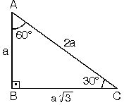 ABC eşkenar üçgeni yükseklikle ikiye bölündüğünde ABH ve ACH (30° - 60° - 90°) üçgenleri elde edilir.