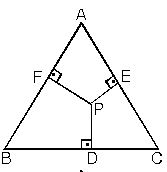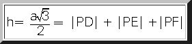 3. Eşkenar üçgenin içindeki herhangi bir noktadan kenarlara çizilen dik uzunlukların toplamı, eşkenar üçgene ait yüksekliği verir. Bir kenarı a olan eşkenar üçgende;
