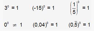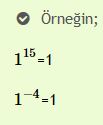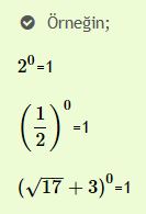 Sıfır dışındaki tüm sayıların sıfırıncı kuvveti (+1) dir.