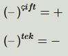 sayılarının sonucu tabanları pozitif sayı olduğu için daima pozitiftir. Kuvvetlerinin yani üssün ne olduğu önemli değildir. Negatif sayıların çift kuvvetleri pozitif, tek kuvvetleri ise negatif sayıdır. Parantezin kullanımı önemlidir.