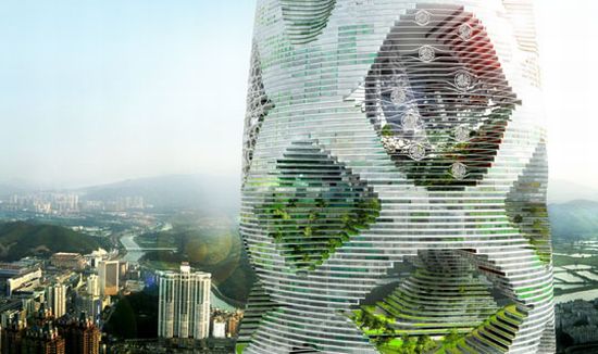 Çin’in Shenzen şehrine inşa edilen binada ticari alanlar ve rezidanslar yer alıyor. Julien de Smedt Mimarlık’ın tasarladığı kule, kendi ürettiği kadar enerjiyi kullanıyor. Uzunluğu 1111 metre olan binanın içinde rüzgar türbinleri, dışında ise güneş enerjisinden yararlanabilmek için fotovoltaikler bulunuyor. Binanın en tepesinde yağmur suyunu arıtmak için bir yer var. Bahçeleri canlı ve yeşil tutabilmek için yağmur suyundan yararlanılıyor. İçinde bütün bir şehri barındırabilecek kapasiteye sahip bina, dikey bir orman olarak tasarlanmış. Bütün bir kat boyunca yeşil alanların bulunduğu binanın büyük bir bölümü sadece yeşil alanlar için ayrılmış. Binanın içinde roller-coaster benzeri tramvay sistemleri de bulunuyor. Ayrıca rüzgar enerjisinden düzgün şekilde yararlanabilmek, doğal ışık alabilmek ve havalandırma sağlayabilmek için tamamen açık alanları da bulunuyor. 5 milyon 100 bin metrekare inşaat alanı olan binanın inşaatı devam ediyor.
