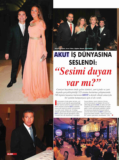 RTÜK ile aradaki dava süreci devame diyor. Ancak Akut bugün, Cem Hakko, Jeff Hakko, Suzan Sabancı Dinçer, Ahmet Kocabıyık, Ali Koç gibi isimlerin desteğiyle kendisi adına gerçekleştirilecek bir yardım gecesi yapacak. Yardım gecesi fikrinin aslında 10 ay önce Cem Hakko ile aralarında yaptıkları bir konuşma sonucunda doğduğunu ifade eden Mahruki, hikayeyi şöyle anlattı: "Bu yıl 1999 depreminin 10’uncu yılı. Biz de bu nedenle AKUT yararına bir gece yapmaya karar verdik. İlk önce 17 Ağustos’u düşündük. Ama tatil dönemi olduğu ve kriz başladığı için erteledik. Sonunda ’Ne olursa olsun 26 Mart’ dedik. Dünya tarihinin en büyük krizlerinden birini yaşıyor. Ama deprem ne zaman olacak bilinmiyor. İş dünyası da bu durumun farkında. Kriz de olsa hayat devam ediyor." 600’e yakın işadamının 1000 TL’lik bilet alarak katılacağı gecede katılımcıların her birine birer darbuka hediye ediliyor. Ayrıca AKUT’un kullandığı bazı malzemelerin simgesel olarak satışının yapılacağı ve bu yolla bağış toplanacağı ifade ediliyor.