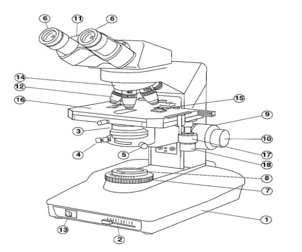 17. Y-aksisi kontrol düğmesi. Preparatı yukarı ve aşağı hareket ettirmemizi sağlar.