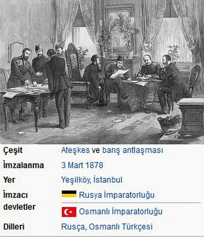 1877-78 Osmanlı-Rus Savaşı sonunda imzalanan barış antlaşması (3 Mart 1878).
