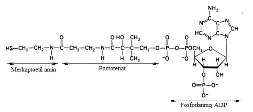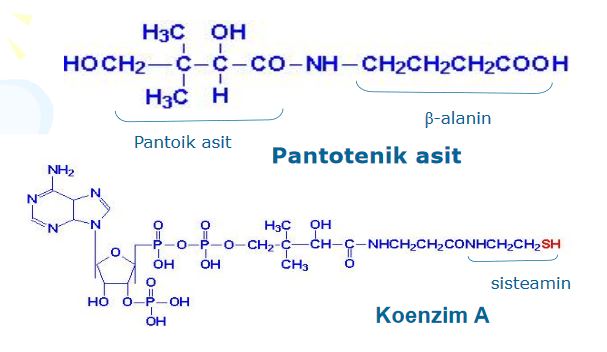 - ADP (Adenozin difosfat ) ile birlikte koenzim A yı oluşturur. Bu madde insan yaşamında gerekli olan bir çok işlem için olması şart olan bir enzimdir.