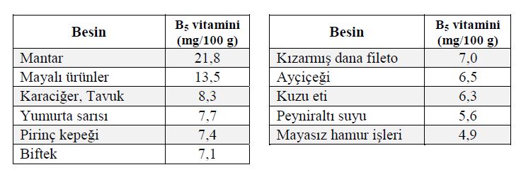 Vitaminler - B5 Vitamini (Pantotenik Asit)