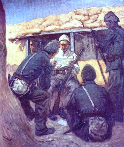 Ressamımız, kahramanlık ve savaşla ilgili konularda da birkaç eser vermiştir. Atatürk'ün anıtı ile Başkumandanlık Meydan Muhaberesi'nden önce durumu harita üzerinde değerlendiren Mustafa Kemal, Mareşal Fevzi Çakmak'la İnönü üçlüsünü bir arada yaptığı tablo bunlara örnektir.