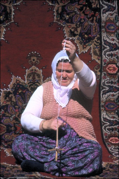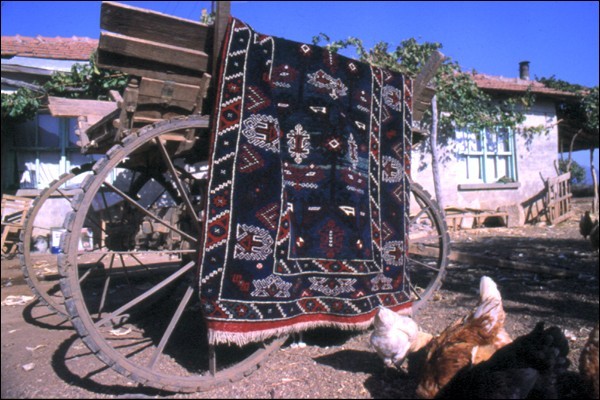 yün, pamuk ya da ipek iplikten, çeşitli düğüm teknikleri kullanılarak üretilen yaygı.