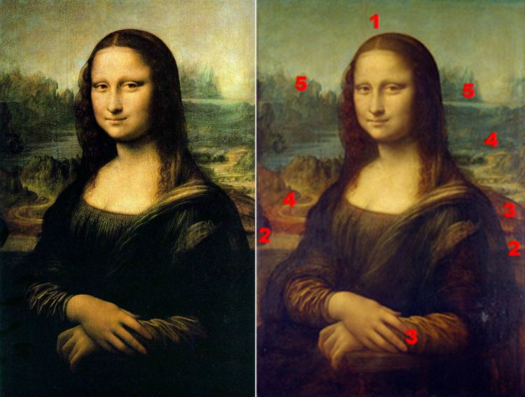 Mona Lisa hakkında kısa bir bilgi verdikten sonra sıra geldi Mona Lisa tablosunda nerelere bakılacağına. Tabloda bakılacak yerlerden biri bu kadar korumaya rağmen Mona Lisa tablosunda oluşan çatlak. Biraz yakından bakarsanız, Mona Lisa’nın saçlarından başlayıp tablonun en üstüne kadar giden 11 cm uzunluğundaki çatlağı görebilirsiniz