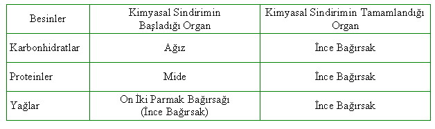 Kimyasal sindirim ağızda, midede ve ince bağırsakta gerçekleşir.