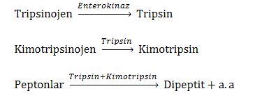 Pankreastan salgılanan tripsinojen enzimi inaktif olup, ince bağırsaktan salgılanan enterokinaz enzimi ile aktifleştirilir.