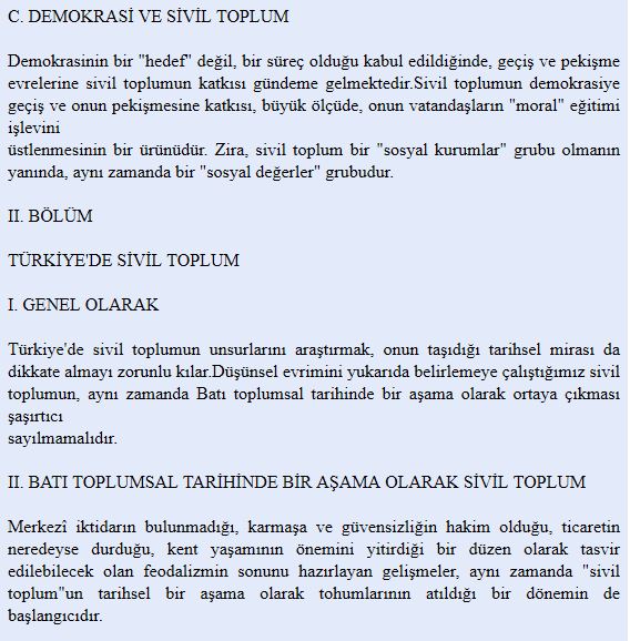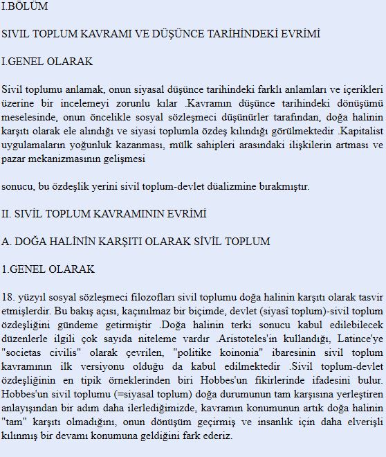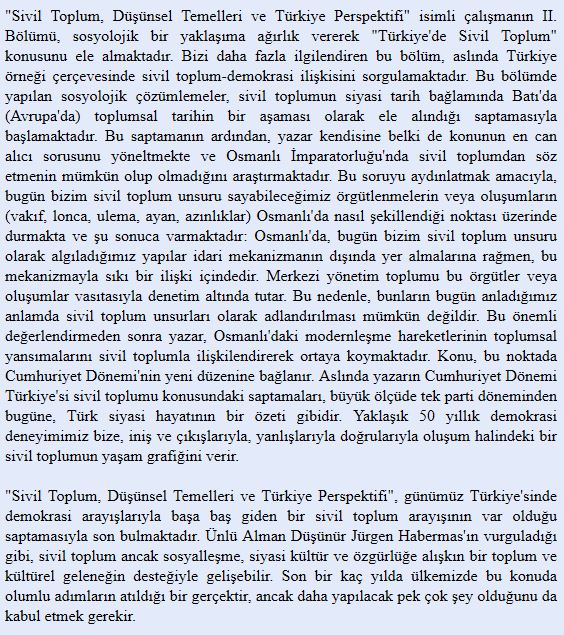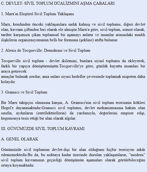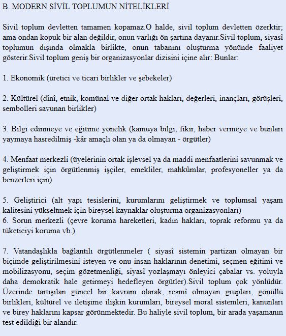 İlk olarak kavrama dair genel bir çerçeve oluşturması amacıyla Ahmet Cevizci’nin Felsefe Sözlüğü’ndeki “sivil toplum” maddesine göz atılabilir: