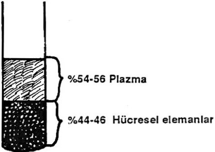 Eğer kan santrifüj edilirse, hücreler plazmadan ayrılır. Hücreler daha ağır oldukları için dibe çökerken daha hafif olan plazma üstte kalır. Kan, içi heparin ile sıvanmış “mikropipet” denilen küçük tüplerde santrifüj edilir. Bu tüpün en alttaki kısmında eritrositler toplanır, bunun hemen üstünde ise çok ince bir tabaka halinde lökositler bulunur, en üstte ise plazma bulunur. Hematokrit, eritrositlerin oluşturduğu kan hacminin toplam kan hacmine oranıdır. Hematokrit tayini için kan heparinize özel tüplerde santrifüj edilir, eritrositler en altta toplanır, onun üstünde lökosit ve trombositlerin oluşturduğu çok ince bir tabaka oluşur, en üstte ise plazma adı verilen açık saman sarısı-beyaz renkte sıvı toplanır. Hematokriti hesaplamak için eritrositlerle dolu olan tüpün uzunluğu kanla dolu tüpün uzunluğuna bölünüp, çıkan sonuç 100 ile çarpılır.Hematokrit pipetinde eritrositler 36 mm lik bir sütun oluştururken, lökosit ve trombositler birlikte yaklaşık 1-2 mm lik bir sütun oluşturmalarının sebebi, bu hücrelerin sayılarından kaynaklanmaktadır. 1 mm3 kanda 4,6-6,2 milyon eritrosit varken, 5.000-10.000 lökosit ve 200.000-400.000 trombosit vardır. Doğal olarak, sayıca fazla olan eritrositler hemotokrit pipetinde daha uzun bir sütun oluşturacaklardır.