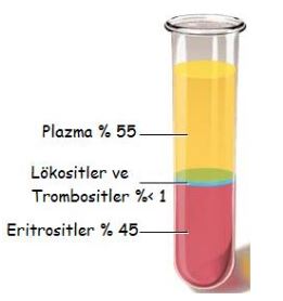 Bir miktar kan, bir süre sallanmadan bir yerde bırakılsa ya da santrifüje edilse, iki kısma ayrıldığı görülür.