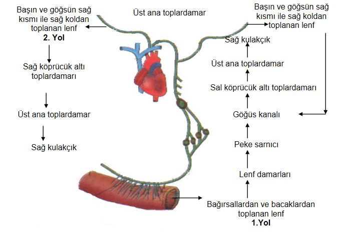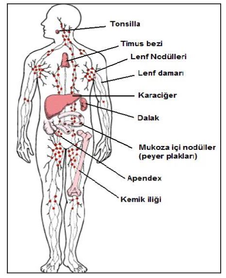 Lenf kapillerlerinde başlayan lenf akımı, lenf damarlarında devam ederek venöz sisteme drene olur. Timus, dalak, tonsilla, lenf nodları ve nodülleri lenfatik doku ve organları oluşturur.