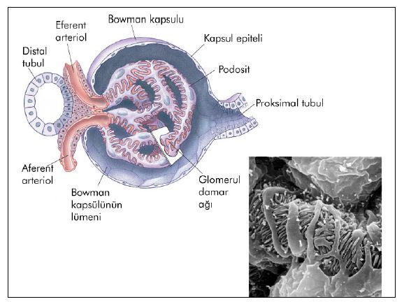 - Glomerül kılcallarının çeperleri iki katmandan oluşur. Bu yapı, damarların hem yüksek basınca dayanıklı olmasını sağlar hem de protein ve kan hücrelerinin dışarı çıkmasını engeller.