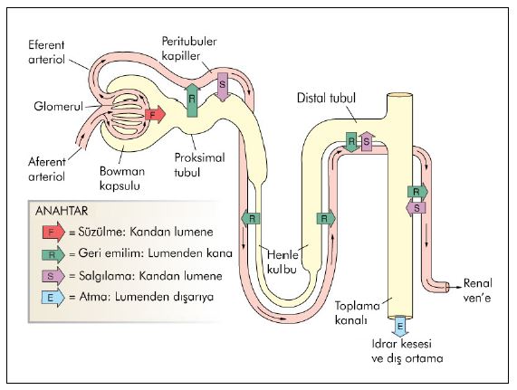 Böbreklerde idrar oluşumu üç aşamada gerçekleşir. Bunlar; filtrasyon (süzülme), reabsorpsiyon (geri emilim), sekresyon (salınım)dır.
