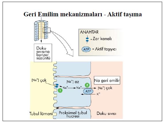 İdrar oluşumunun ikinci aşamasıdır. Böbrek tubuluslarının tüm bölümlerinde hem aktif hem de pasif transport mekanizmaları işler. Tubuluslar, glomerüllerden gelen ve tubuluslar boyunca ilerleyen maddeleri, organizmanın o anki ihtiyaç durumuna göre geri emerler. Filtrasyon ile tubuluslara geçen süzüntü şeklindeki zararlı maddelerin dışında kalan su ve erimiş maddeler, tekrar emilerek kana, yani dolaşıma katılır. Bu olaya reabsorbsiyon denir.
