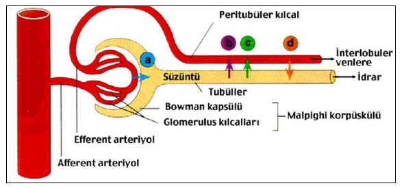 - Glomerül kılcallarında su ve erimiş maddeler, sadece dışarıya verilir.