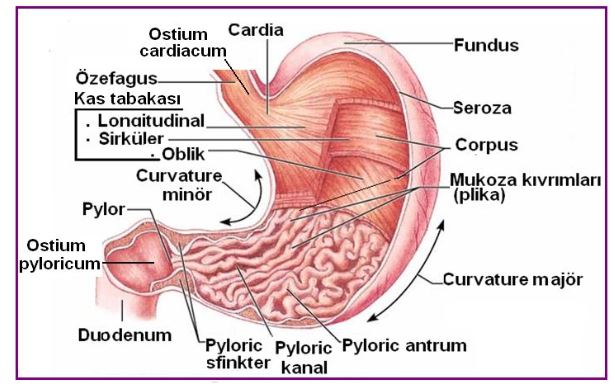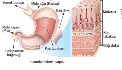 - Kardiya bezleri (Gl.cardiaca): Mukus salgılayan tek tip hücrelerden kuruludur. Bikarbonat da salgılanır.
