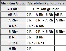 Kan uyum tablosu Alıcı Kan Grubu Verebilen kan grupları