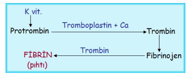 Trombin (Thrombin) kanı pıhtılaştıran bir proteindir. Trombin'e ne kadar ihtiyaç varsa o kadar üretilir. Trombin, plazmada bulunan ve suda erime özelliği olan Fibrinojeni fibrine yani suda erimeyen haline dönüştürür. Bu da pıhtılaşma olayının esas işlemidir. (Kanın pıhtılaşmasında temel madde zaten Fibronojen proteinidir. Fibronojen, vücut içinde erimiş halde bulunmaktadır. Pıhtı işleminin durağan halidir.)