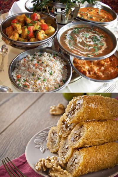 Baklava, sarılıburma, dolanger, kalbur hurması, tel kadayıfı (Peynirli, Cevizli), revani, sütlaç, muskalı, zerde, göbek, dilber dudağı, kargaburnu